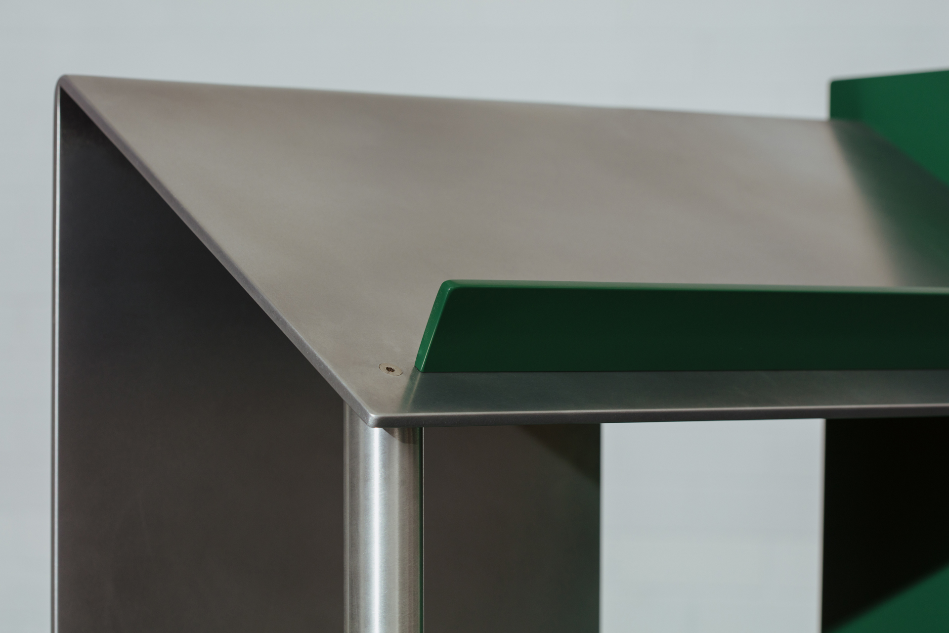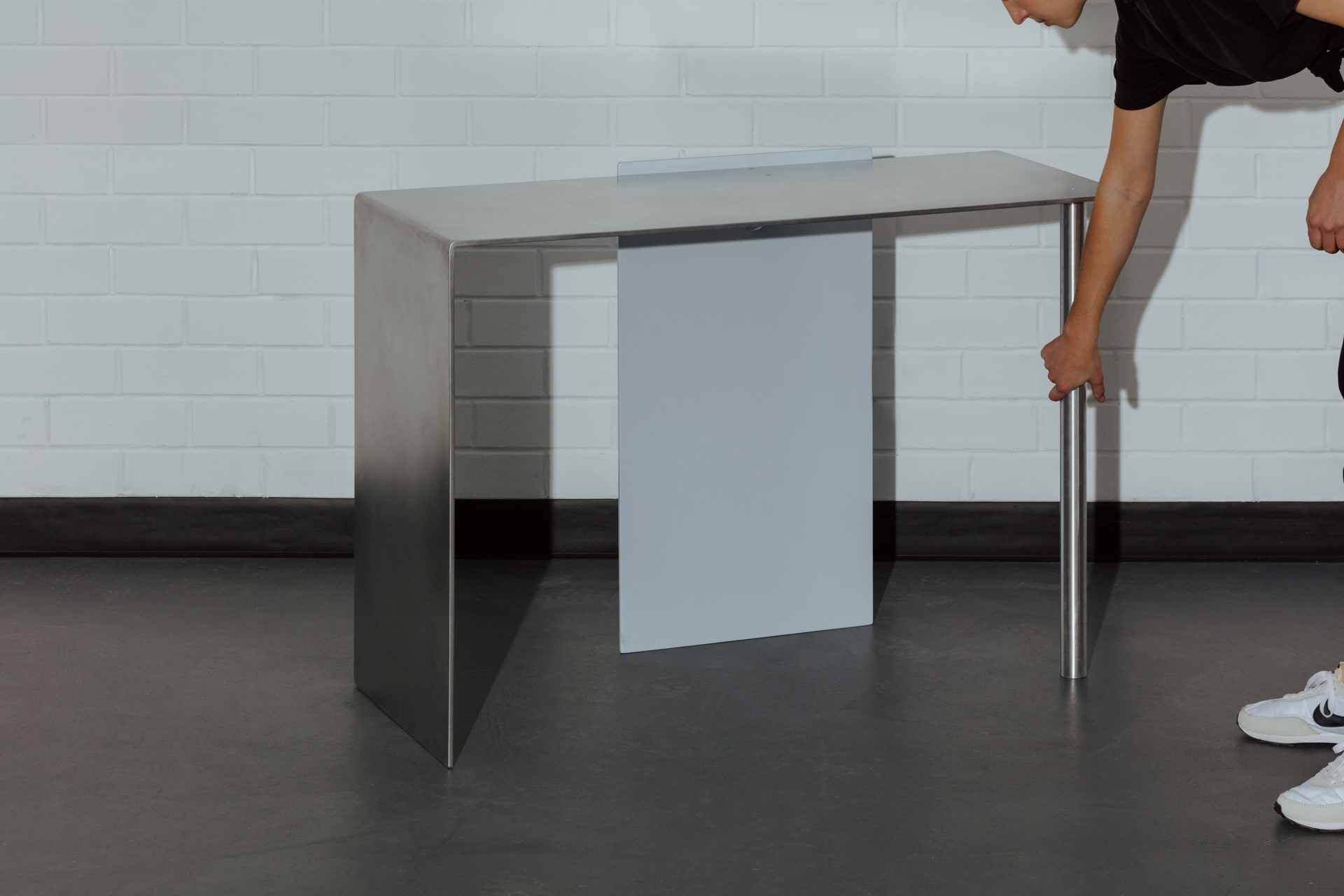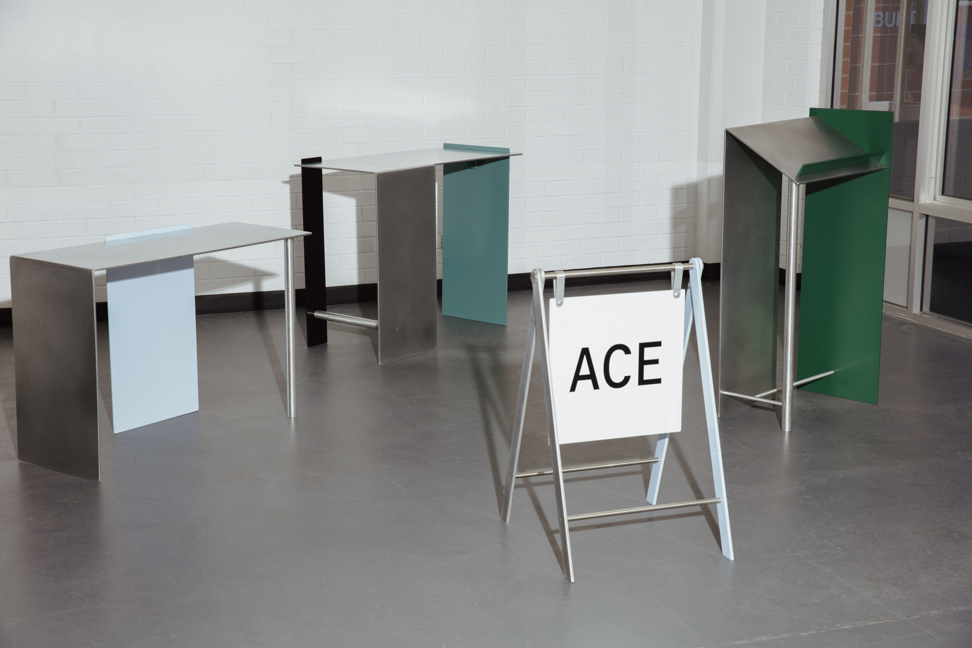 To mark Adelaide Contemporary Experimental’s rebrand, a number of permanent objects were commissioned in response- this included signage, a lectern and two merchandise tables. Keeping in mind the need to create minimalist, adaptable pieces that sit amongst revolving exhibitions, and using an 8mm thick aluminium, the design was about subtracting all but the necessary forms to keep the object strong and balanced.